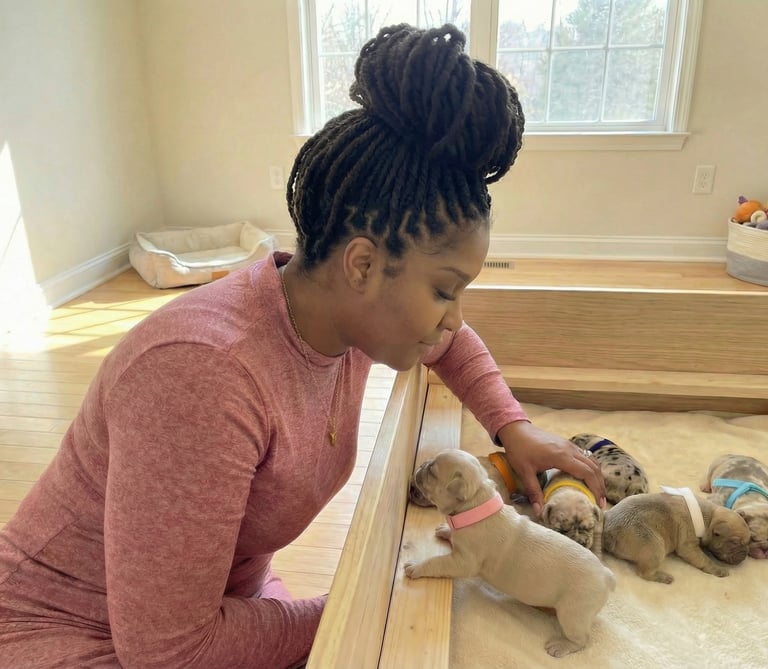 Our little Frenchie from Frenchies Galore is full of joy and health—thank you for such a wonderful addition to our family!